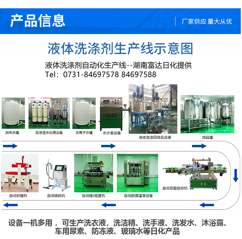 富達日化設備為我單位開發(fā)的洗化專用設備,有幾十種設備任您選擇,該設備直接接上電源后,不作任何安裝調(diào)試即可生產(chǎn)。設備精良,原料易購,設備采用優(yōu)質(zhì)不銹鋼精制而成。用于洗潔精、洗衣液、洗車液、玻璃水、車用尿素、洗衣粉、洗發(fā)水、沐浴露、防凍液、84消毒液等各種洗化用品的生產(chǎn)。