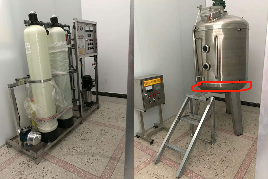 多項專利發(fā)明人王先軍 手機:150-7483-5702 手機:195-7316-0288便宜沒好貨,騙局無處不在,這是某用戶從其他設(shè)備銷售單位采購的洗滌劑設(shè)備,首先,水處理就是一個做工粗造的簡單過濾器,設(shè)備配置極其簡單,水處理設(shè)備支架簡陋,運輸過程稍有震動就會四分五裂,這類水處理設(shè)備大都采用廢舊收購公司回收處理的低價過濾膜,根本無法處理水中的重金屬,影響產(chǎn)品去污力,也無法清除水中的大腸桿菌等細菌導(dǎo)致產(chǎn)品發(fā)臭混濁變質(zhì),如圖所示的攪拌機屬于單層,僅為底部區(qū)域加熱,即使加熱10小時,溫度也滿足不了低溫下洗潔精、洗衣液原料溶解的需要,該加熱裝置形同虛設(shè),其實,就是一個單層普通攪拌機。