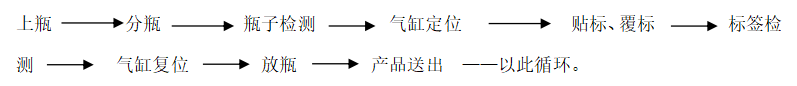 6, 上端分瓶機(jī)構(gòu)放一個(gè)瓶子——依上循環(huán)連續(xù)貼標(biāo)。