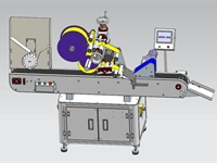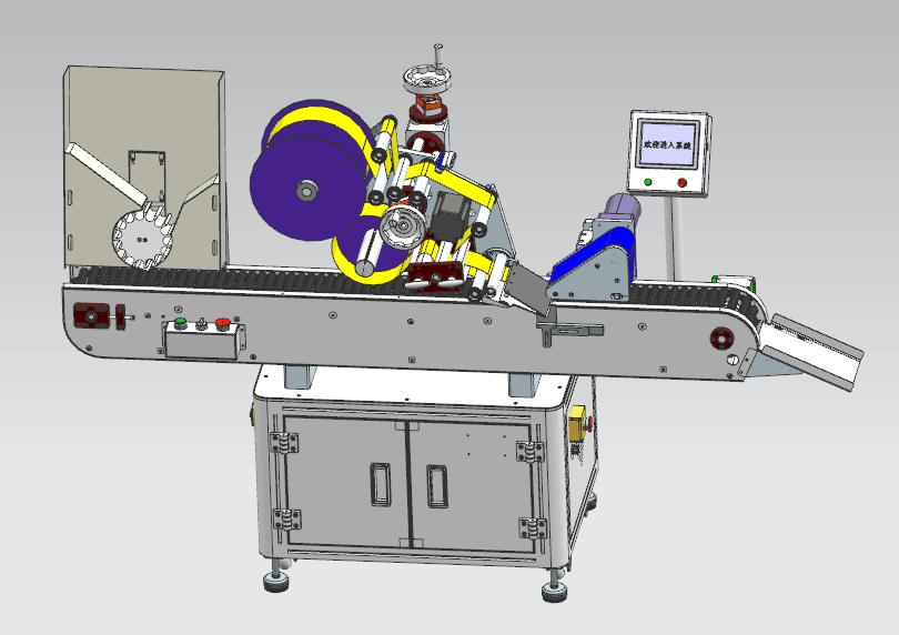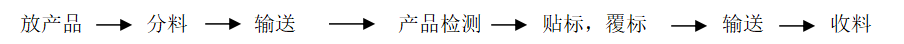 3, 產(chǎn)品在輸送帶的帶動下,自動向右側(cè)貼標(biāo)機(jī)構(gòu)運行;