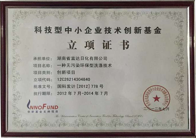1.2012年獲得國家科技部”一種無污染環(huán)保型洗滌技術“技術創(chuàng)新基金; 2.公司注冊商標有: 相思竹 生態(tài)凈瀑 富達 3.購機免費使用商標及多種專利配方;